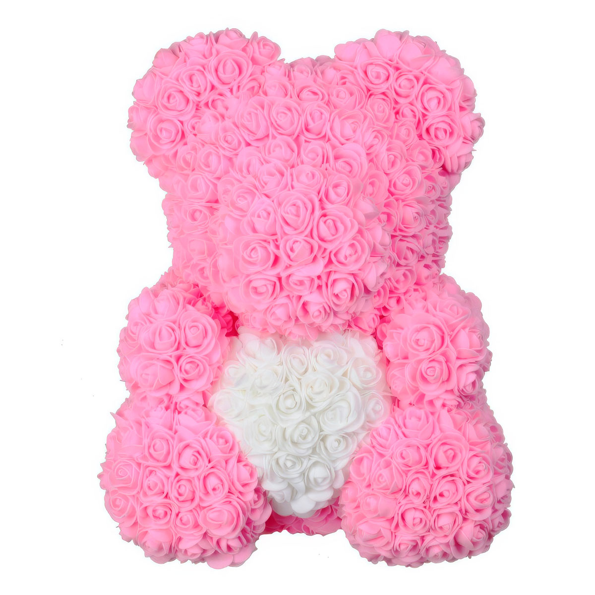 Мишка из роз розовый с белым сердцем (40 см) с доставкой по г Железноводск: вы можете заказать подарок в интернет магазине «Флормания» по цене за 4700 руб.