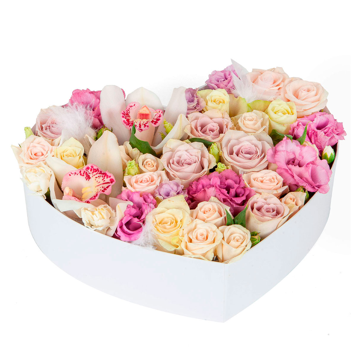 Цветы в коробке «Нежный флер» с доставкой по г Железноводск: вы можете купить букет в цветочном интернет-магазине «Флормания» по цене от 2899 руб.
